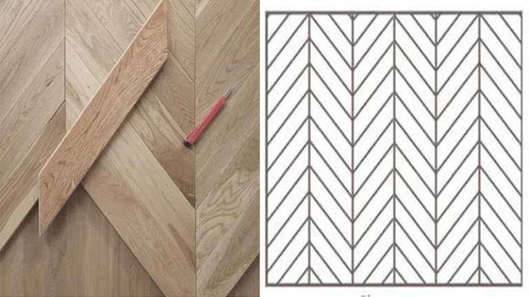 • Potongan: Potongan lantai pada pola chevron biasanya lebih presisi dan membentuk garis lurus yang jelas.