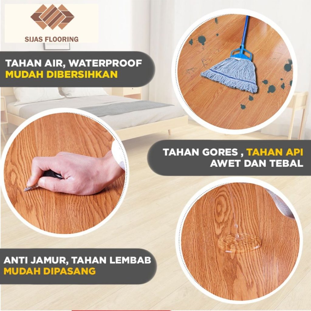 Lantai vinyl stiker sudah disertakan lem dibagian bawah sehingga lebih mudah untuk dipasang, untuk perawatan juga sangat mudah seperti lantai pada umumnya
